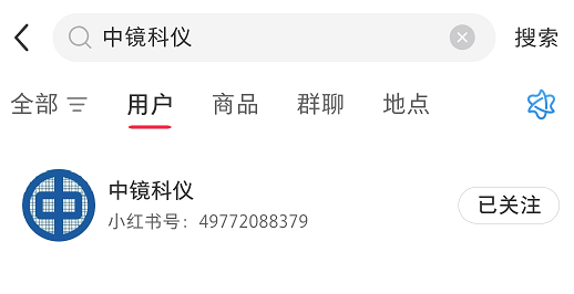 直接在小紅書的搜索框中,鍵入我們的名字——“中鏡科儀”,一鍵直達,不迷路!