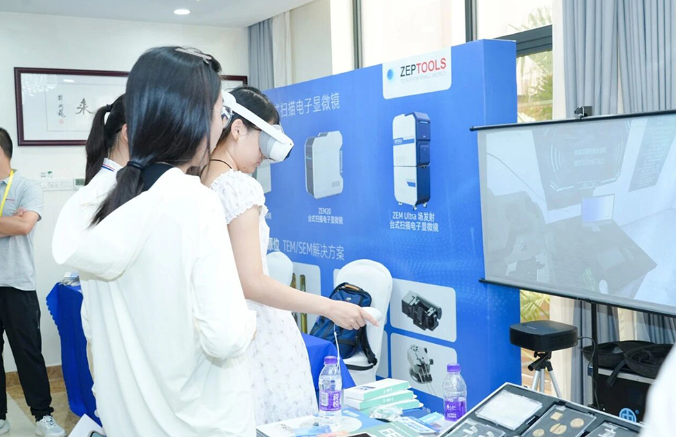 會議期間,微束科技集團旗下品牌中鏡科儀、菲泰姆共同參展,中鏡科儀的電鏡耗材產品吸引了眾多與會者蒞臨展臺咨詢交流。中鏡科儀工作人員從技術特點、應用場景等多方面為客戶講解產品,贏得了與會者的一致好評。菲泰姆的VR虛擬現實超薄切片機仿真實驗室項目則讓與會者親身體驗了虛擬現實技術的創新應用。