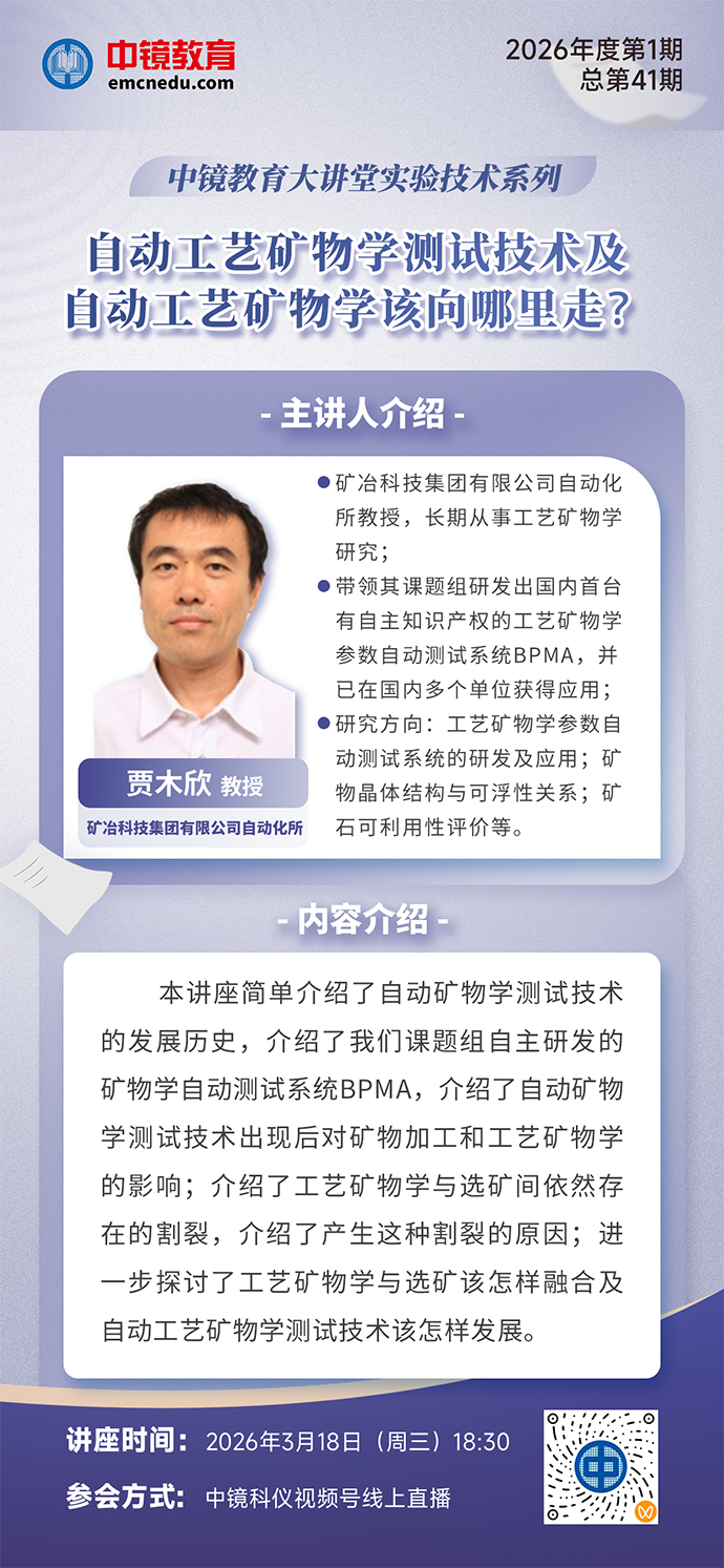 【講座預告】中鏡教育大講堂-實驗技術系列2026年第1期(總第41期)