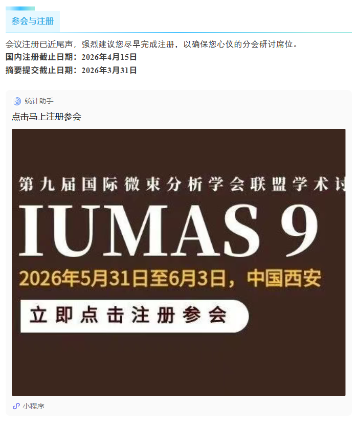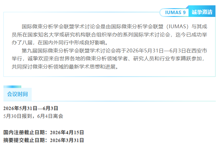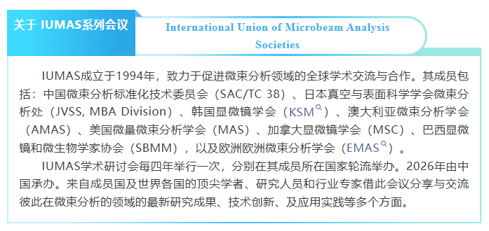【行業(yè)會(huì)議】第九屆國(guó)際微束分析學(xué)會(huì)聯(lián)盟學(xué)術(shù)討論會(huì)(IUMAS 9)· 第二輪通知