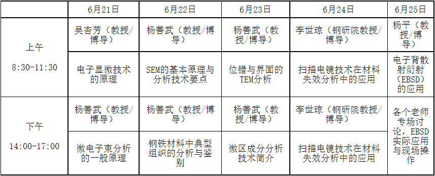 關于舉辦電鏡技術及應用培訓班的通知 ——北京科技大學材料分析測試系列培訓 主辦:北京科技大學、北京材料分析測試服務聯盟 承辦:北京科技大學分析檢驗中心、北京科技大學材料學院實驗中心 培訓時間:2010年6月21日-6月25日 培訓地點:北京科技大學 培訓專家組成員: 吳杏芳 教授、博士生導師,享受國務院的政府特殊津貼; 李世瓊 鋼鐵研究總院教授、博士生導師; 楊 平 教授、博士生導師,中國體視學學會材料科學分會秘書長; 楊善武 教授、博士生導師; 培訓目的: 本次培訓采取理論與實踐相結合的教學方式,系統介紹電子衍射及成像、電子顯微技術基本概念、原理和發展歷史,講解掃描電鏡技術及應用,全面講解電鏡技術在材料科學與工程實際中的應用,并通過參觀實習,使學員更加直觀、深刻的掌握電鏡技術。培訓后頒發培訓證書。 培訓日程安排: 培訓費用:1500元/人; 報名及聯系方式: 薛潤東 電話:62333470 E-mail:xrd@ustb.edu.cn 劉亞東 電話:62340208 E-mail:lyd@ustbtest.com 地 址:北京科技大學材料測試樓401室 北京科技大學分析檢驗中心