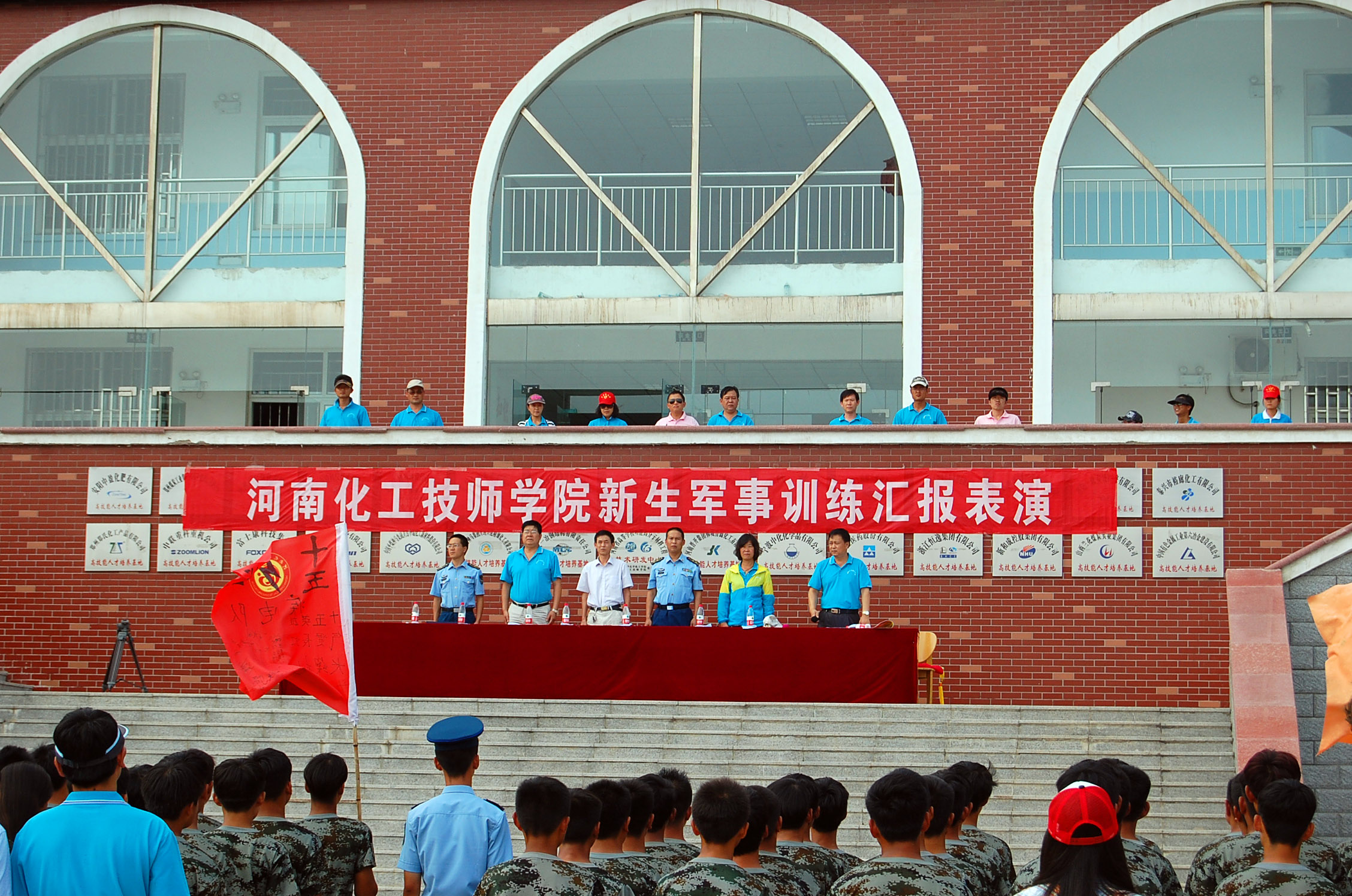 爽朗的八月,電鏡班迎來了新的面孔,他們告別了天真爛漫的中學時代,懷著一份決心,一份希望,一份好奇來到了河南化工技師學院。作為一年級新生,將面臨著軍訓的嚴峻考驗,十五天的軍訓生活將成為同學們未來三年的基礎,它將教同學們怎樣嚴格要求自己。 對于一個滿懷憧憬的新生,軍訓可以考驗同學們的毅力和意志,培養一種吃苦耐勞、積極向上的精神。站在火紅的軍旗下,我們所有新生身穿綠色軍服,以一種雄赳赳,氣昂昂的軍人姿態屹立在驕陽之下。軍訓作為入學生活中的第一課,同學們決心用自己的努力,用自己的良好習慣度過這十五天特殊的生活。 疊被子是新生軍訓整理內務中的一項重要內容,但要在最短的時間內將被子疊的棱角分明,干凈漂亮,則需要掌握一定的技巧和反復不斷地練習。 8月26日下午,在學院西操場舉行15級新生疊被子比賽。一天的軍訓結束后,同學們帶著自己的涼席和被子來到操場,比賽開始,上千人同時疊被子的場面著實令人震撼。 疊被子比賽留影 周一早九點,微風和煦,歌聲嘹亮。同學們踏著堅定地步伐,氣宇軒昂、精神飽滿的準時來到軍訓的操場準備升旗儀式。 升旗儀式在主持人的宣布下正式開始。駐汴95936部隊為我校新生做國旗護衛隊,高昂的胸膛,嘹亮的口號,豪邁的步伐,彰顯著教官們獨有的風采。 升國旗,奏國歌。隨著國歌的響起,旗手將旗幟拋向空中,全體人員向旗幟致以最崇高的軍禮。國旗下學校領導講話鼓舞人心,催人奮進,給同學們很大的精神鼓勵;學生代表們語氣豪邁,字字鏗鏘有力,流露出滿腔的愛國、愛校情懷。 8月28日下午,新生向學校、部隊領導及老師們匯報了訓練成果,校領導和軍區領導共同檢閱了軍訓團。方陣表演展示出學子們這些天來的汗水結晶。軍訓方陣口號嘹亮走過主席臺,颯爽英姿引來場上師生的陣陣掌聲。 15級新生方陣表演 軍訓帶給了同學們深刻的體驗,也留下了美好的記憶,希望同學們在未來的求學路上無論遇到多大的困難都能夠擁有堅定的信念,不被困難和挫折壓倒。