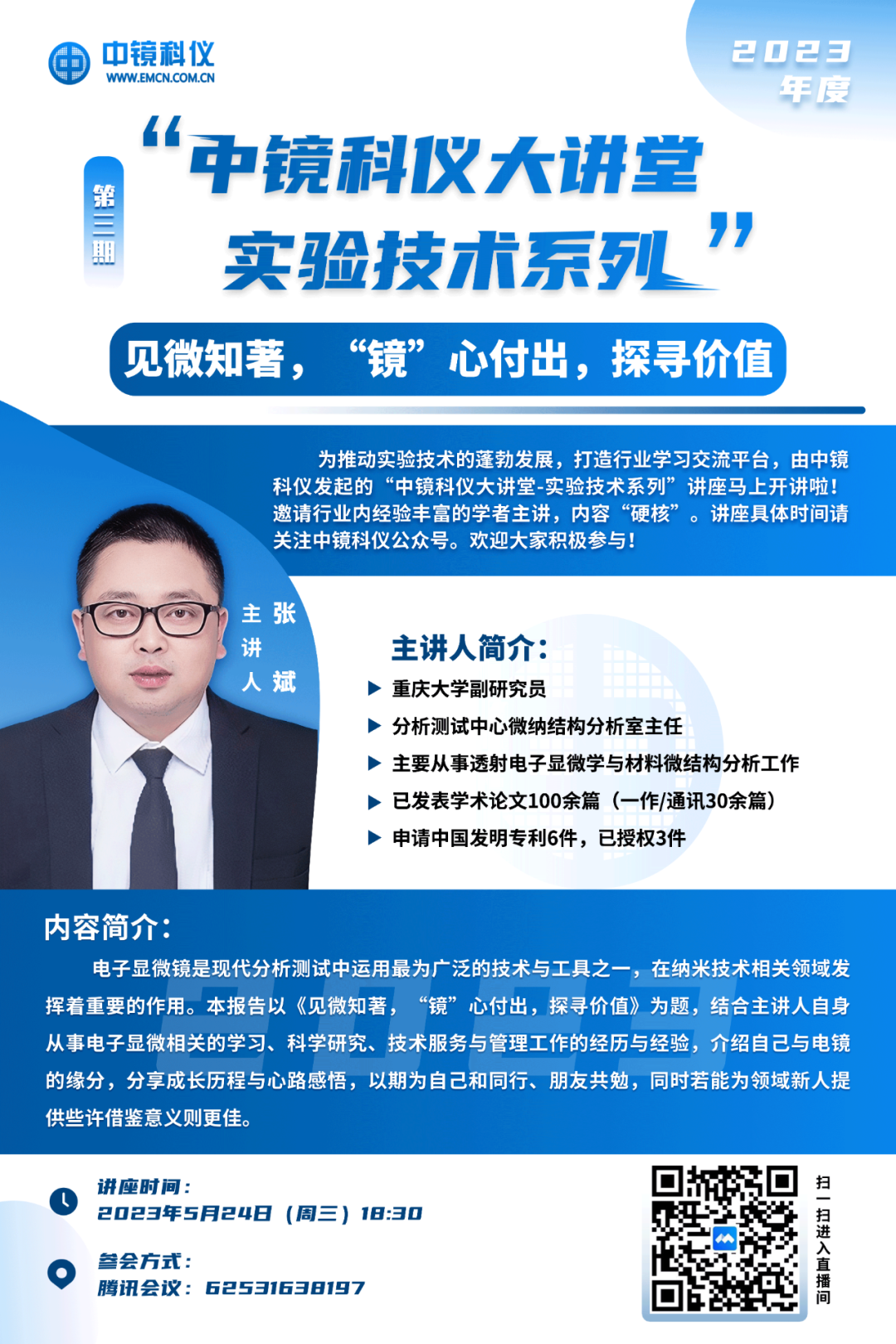 第三期:見微知著,“鏡”心付出,探尋價值 為推動實驗技術(shù)的蓬勃發(fā)展,打造行業(yè)學(xué)習(xí)交流的平臺,由中鏡科儀發(fā)起的2023年“中鏡科儀大講堂”第三期-“實驗技術(shù)系列”講座圓滿結(jié)束!