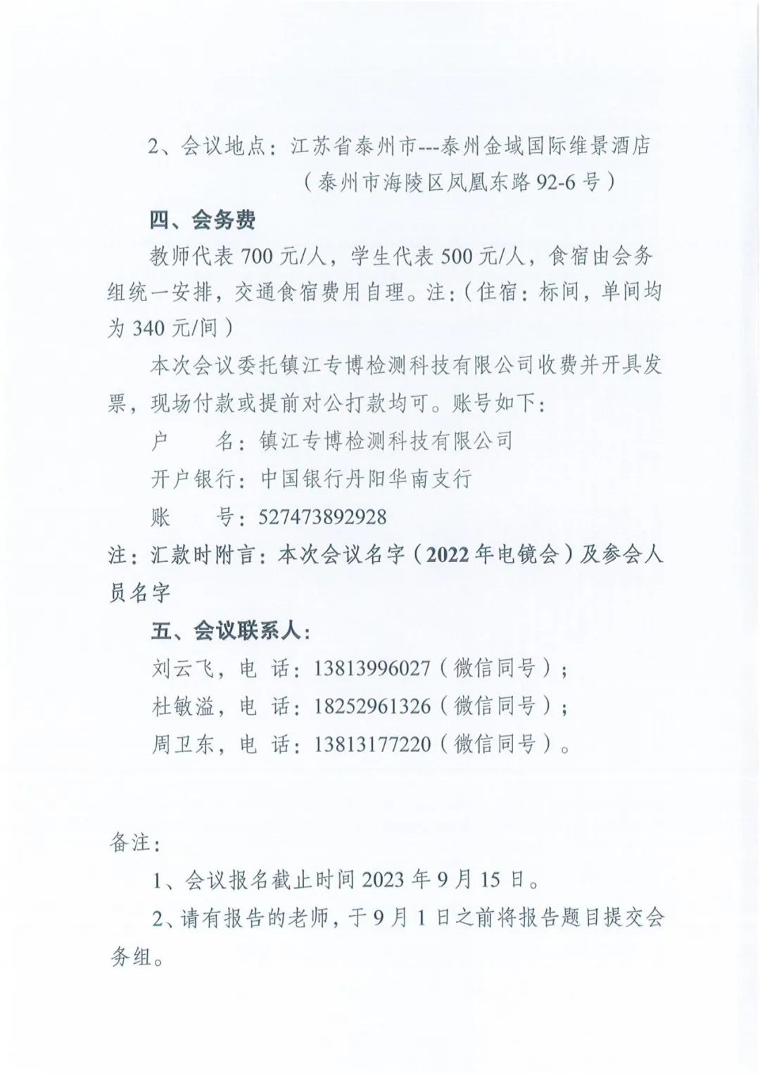 【行業會議】2022年江蘇省電子顯微學學術交流會通知(第三輪)