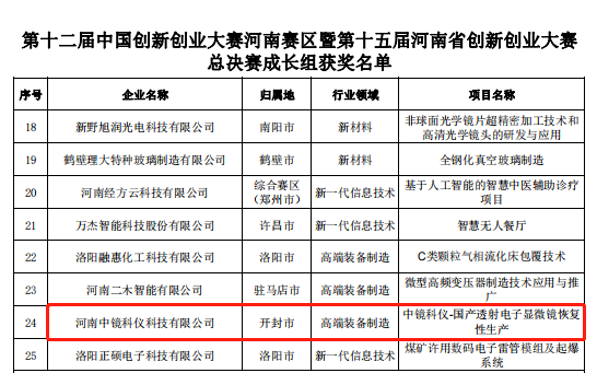喜報!中鏡科儀榮獲第十二屆中國創新創業大賽河南賽區暨第十五屆河南省創新創業大賽總決賽三等獎
