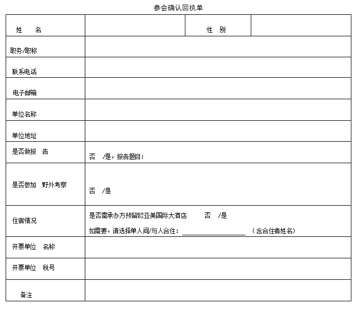 5月30日前請將《會議回執》以電子郵件發送至: