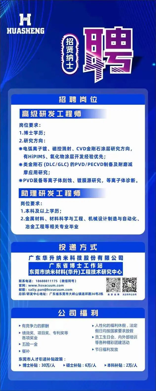 【行業招聘】廣東華升納米科技股份有限公司招賢納士