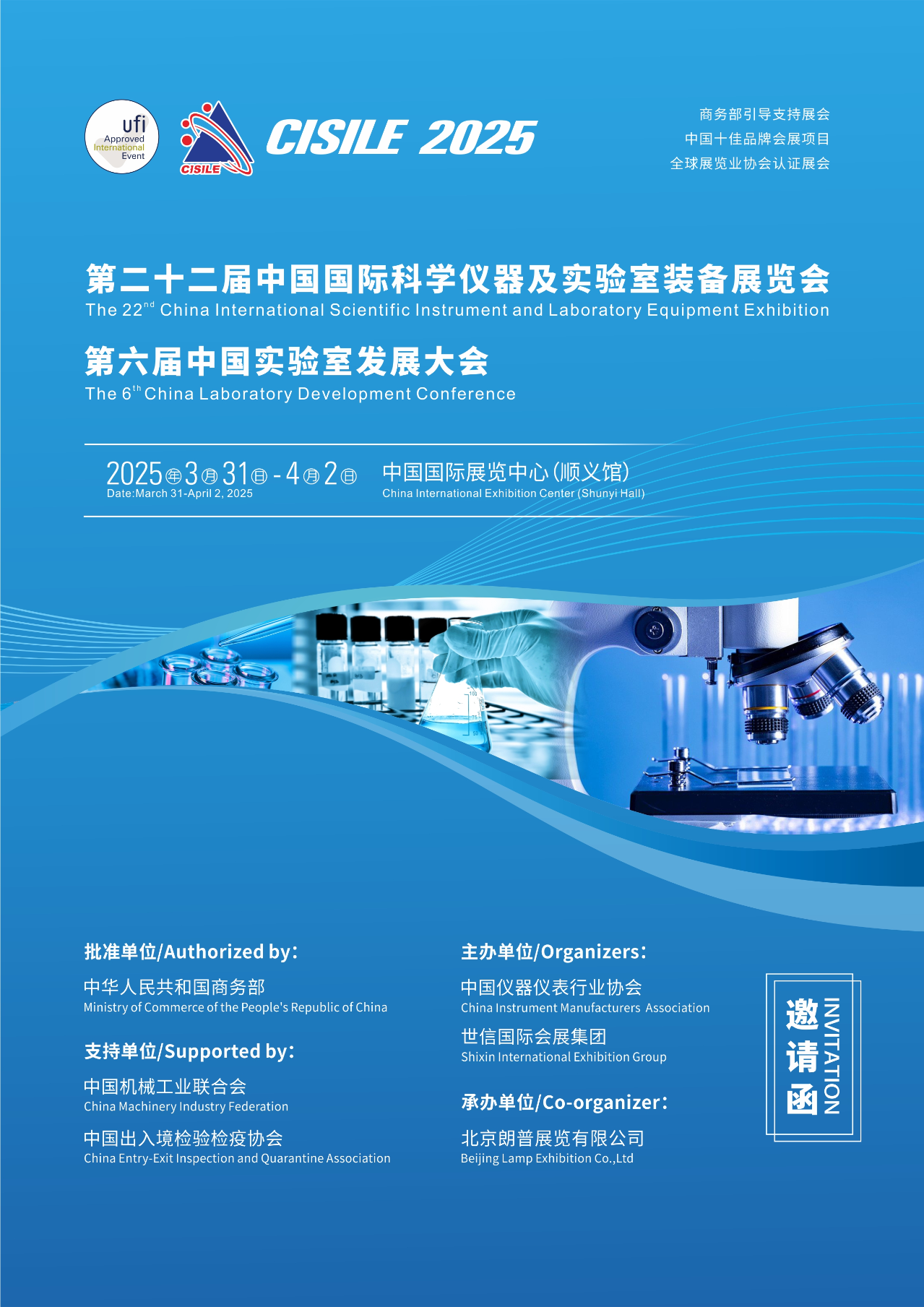 中國國際科學儀器及實驗室裝備展覽會(以下簡稱“科儀展”或英文縮寫“CISILE”)作為中國十佳品牌會展項目、中國誠信展覽、UFI認證的國際品牌展會,至今已經成功舉辦了二十一屆。二十余載,CISILE主辦和組織單位不忘初心,不斷提升科學儀器及實驗室裝備展覽的規模和水平。CISILE已經成為科研院所、高等院校、第三方檢測機構、大型企業等單位了解、采購科學儀器及實驗室裝備的必選線下平臺,是全球科學儀器及實驗室裝備領域的盛會,更是科學儀器及實驗室裝備領域的國際前沿發展趨勢和產業升級的“風向標”,為推動我國科學儀器及實驗室裝備領域的技術創新、自主研發及行業發展作出了積極貢獻。為深入貫徹落實習近平總書記關于加快實現高水平科技自立自強的指示精神,助推科技創新和產業創新深度融合,助力發展新質生產力,在商務部、中國機械工業聯合會的指導下,中國儀器儀表行業協會與世信國際會展集團研究決定,于2025年3月31日-4月2日在中國國際展覽中心(順義館)舉辦第二十二屆中國國際科學儀器及實驗室裝備展覽會(以下簡稱 CISILE 2025),預計展示面積40000平方米,參展企業1000余家,專業觀眾超50000人次。集中展示實驗室儀器及裝備、分析儀器、光學儀器、試驗儀器、生命科學儀器、生物技術與儀器等專業領域的新產品、新技術、新成果。同期將舉辦第六屆實驗室發展大會、第五屆中國危化品管理與實驗室安全高峰論壇等學術論壇及相關活動,為廣大科研人員及行業人士便捷地獲取行業最新資訊、分享前沿技術和研究成果,搭建交流研討產業政策的互動平臺。CISILE 2024展示面積和參展企業數量實現雙增長,展會能級和品牌效應實現雙躍升。我們將繼續努力,再次提升CISILE 2025規模和水平,匯聚更多行業頂尖企業與行業精英,為科研院所、高等院校、第三方檢測機構、大型企業等領域的用戶單位提供更寬的選擇面、更好的采購渠道、更深的研討層次。誠摯邀請和歡迎您蒞臨CISILE 2025參展參會,共享合作與發展機遇。