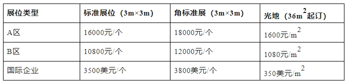 注:A.標準展位配備:中英文楣板(寬度25cm)、日光燈兩盞、隔板(高度250cm,可用高度246cm)、洽談桌一張、椅子兩把、可容400W/220V電源插座一個及地毯;